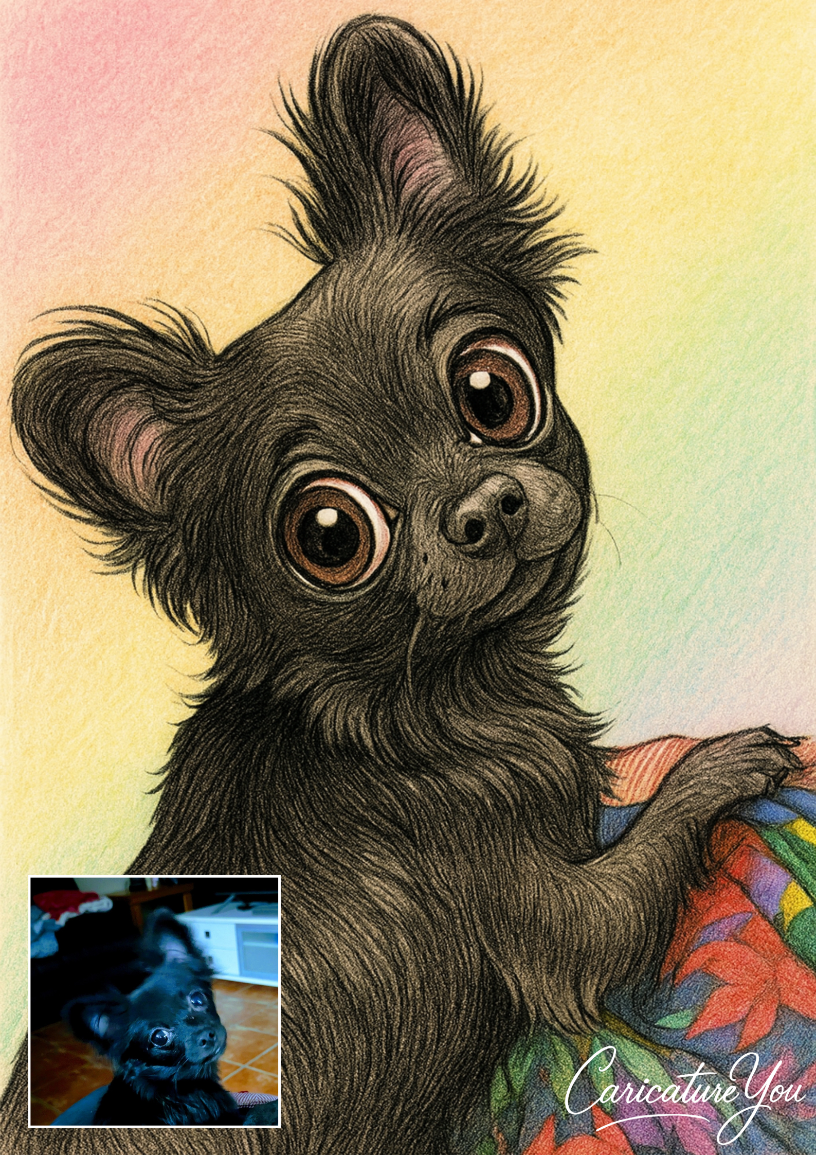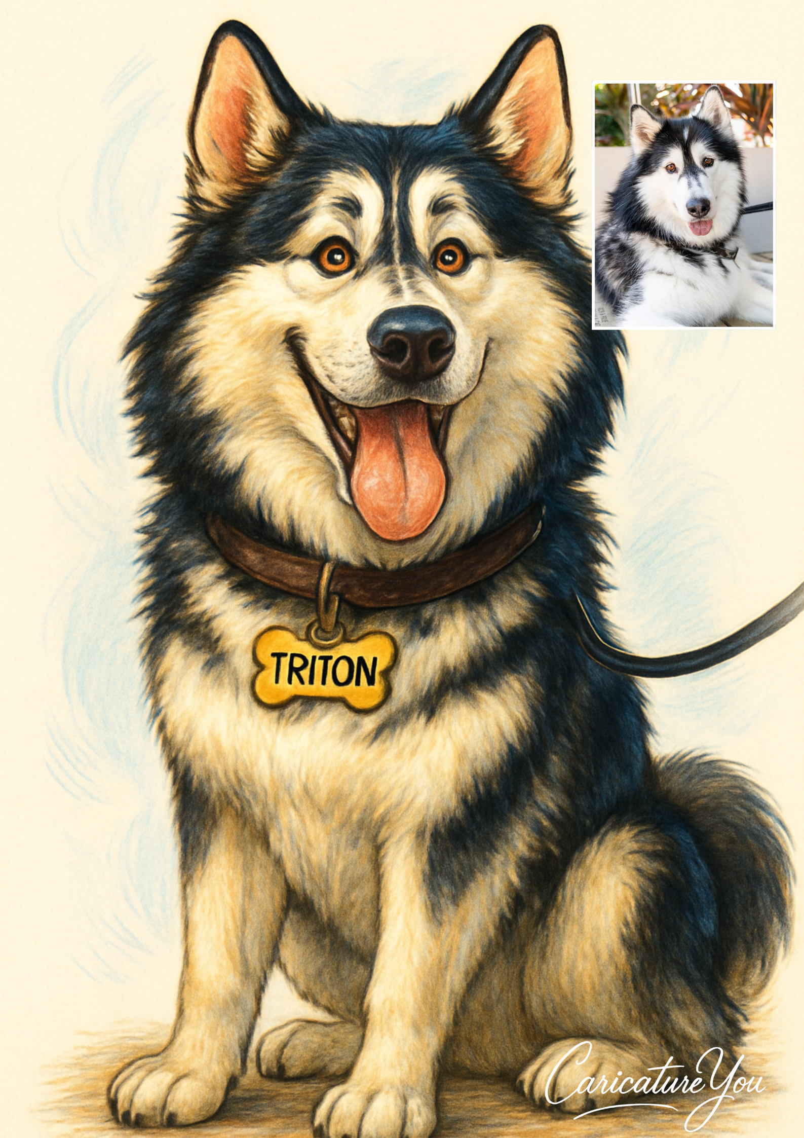 Transform your beloved furry friend into a one-of-a-kind work of art with our custom pet caricatures. Show off your pet's unique personality and make them the star of the show. A perfect gift for any pet lover, our caricatures will bring joy and laughter to your home.
